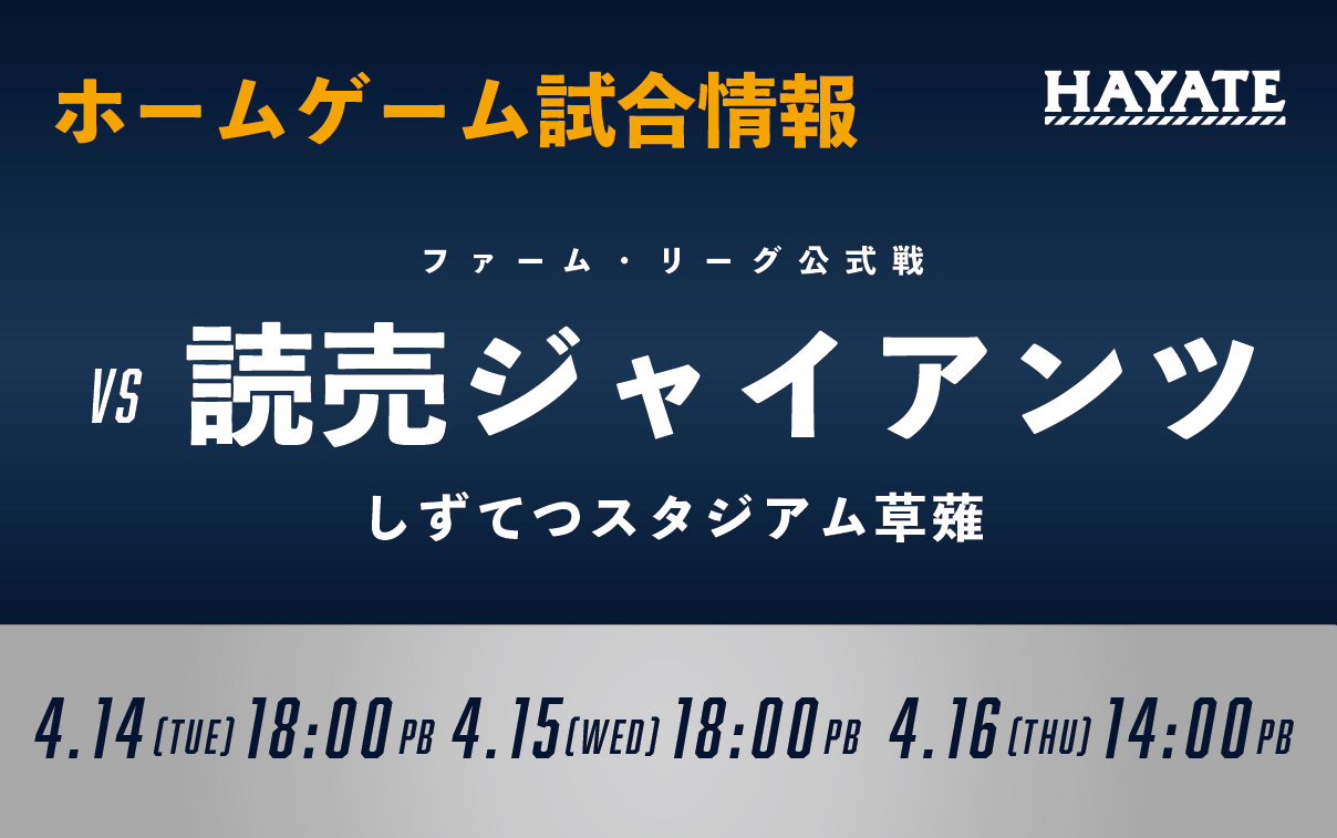 4/14(火) 15(水) 16(木) 読売ジャイアンツ戦 開催情報をお知らせいたします。